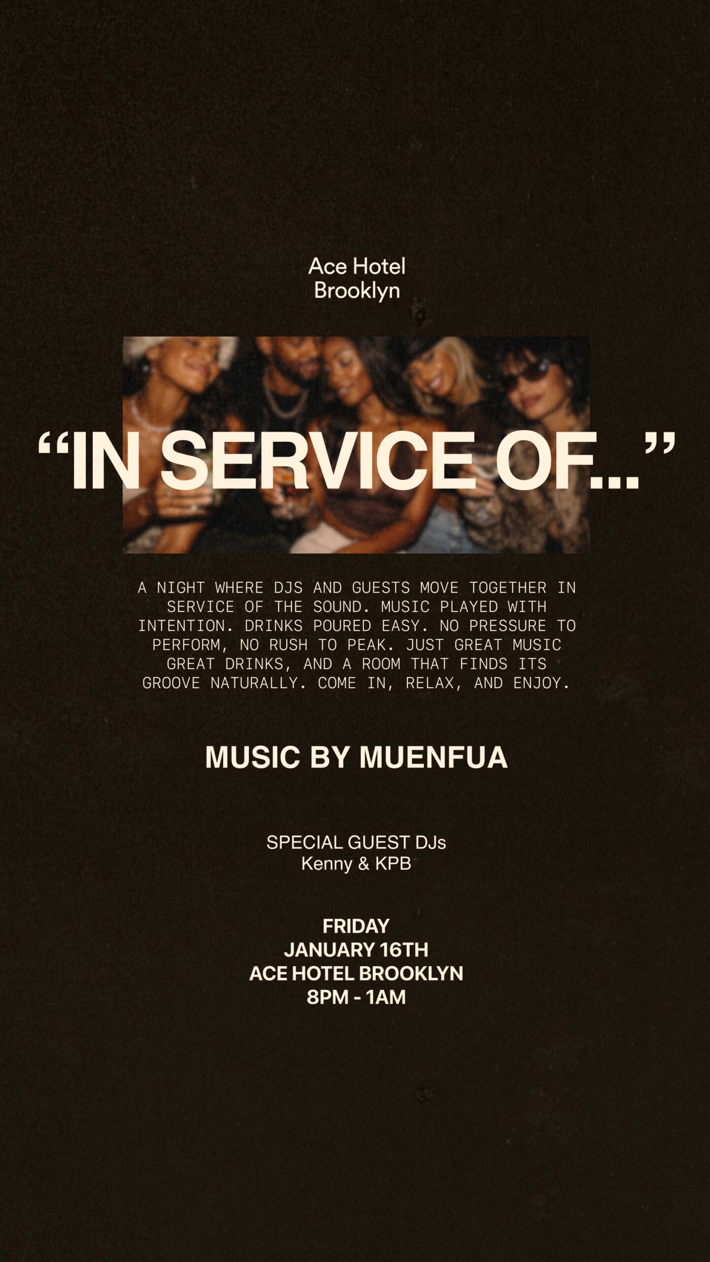 Making his Ace Brooklyn debut, MUENFUA brings a genre-blurring set rooted in R&B, deep house, and global club sounds.