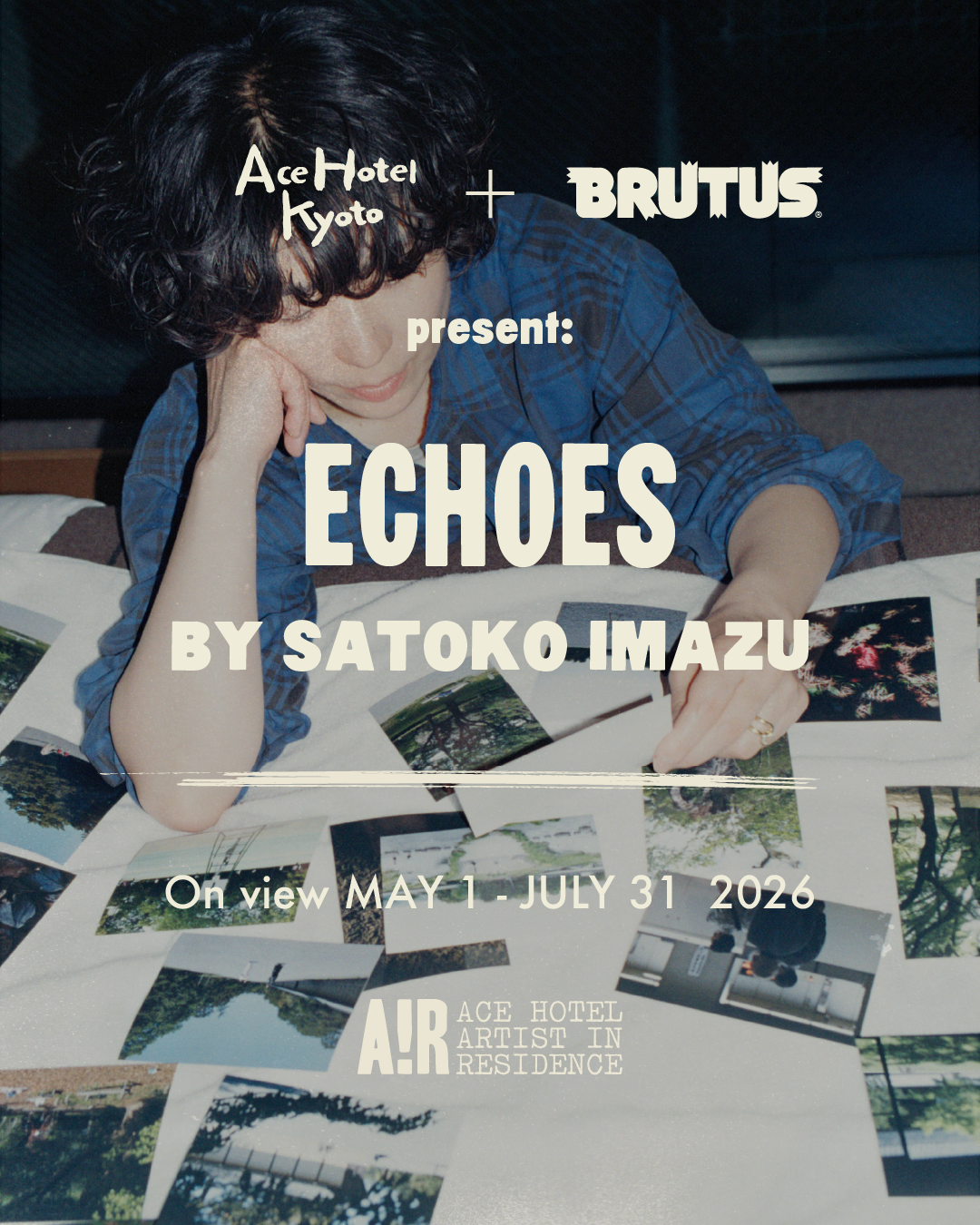 As the first artist in the Artist-in-Residence program (A!R) presented by Ace Hotel Kyoto × BRUTUS, Satoko Imazu will present her exhibition “ECHOES” from May 1 to July 31, 2026 at the 1F Lobby Gallery. A reception party will be held on the same day from 6:30 PM, followed by a photo tour workshop scheduled for Saturday, May 2.