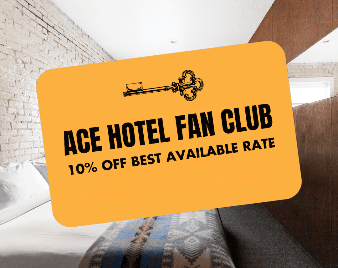 Introducing the Ace Hotel Fan Club. It’s for people who go places. Get up to 10 Percent off the Best Available Rate.