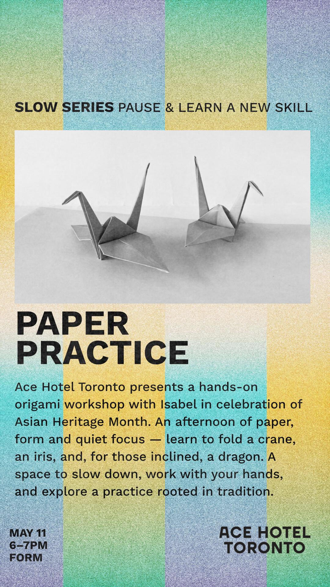 Ace Hotel Toronto presents a hands-on origami workshop with Isabel in celebration of Asian Heritage Month. An afternoon of paper, […]